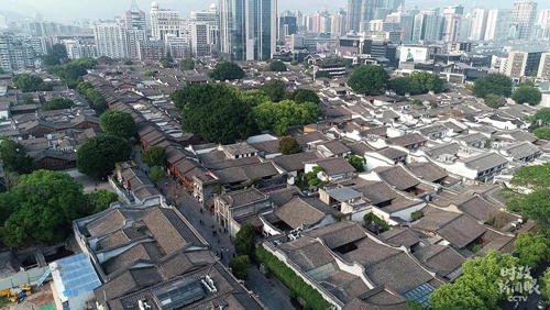 △俯瞰三坊七巷(总台央视记者李鹏冲拍摄)