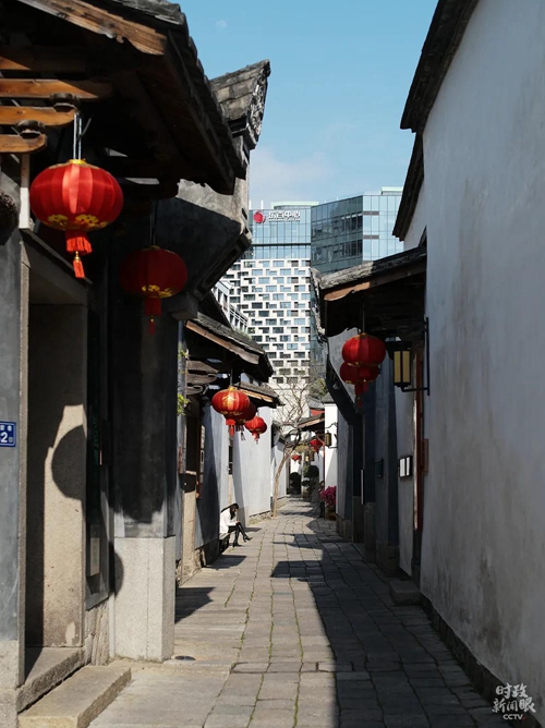 △走进郎官巷,可以看到街区外的高楼,新旧建筑风格交相辉映。(总台央视记者彭汉明拍摄) |