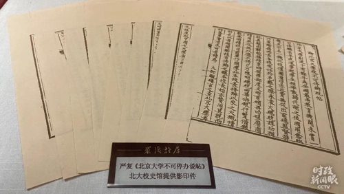 △严复任北大校长期间曾向教育部提交《北京大学不可停办说帖》,这是由北大校史馆提供的影印件。(总台央视记者彭汉明拍摄) 2016年5月,习近平在哲学社会科学工作座谈会上谈到了严复。他说:“为了寻求救亡图存之策,林则徐、魏源、严复等人把眼光转向西方。”
