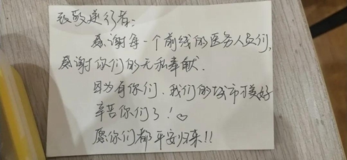 泉州市第一医院队员们在防护服上写下加油的话 一张纸条+四果汤,暖人心田