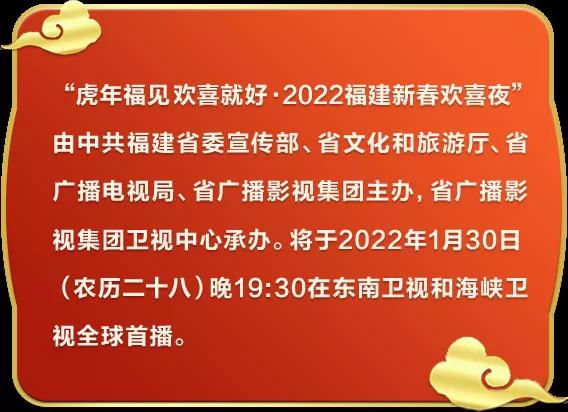 1月30日19:30 “虎年福见 欢喜就好·2022福建新春欢喜夜” 来自五湖四海的他、她,还有他们 将倾力助阵,为福建打条广告!