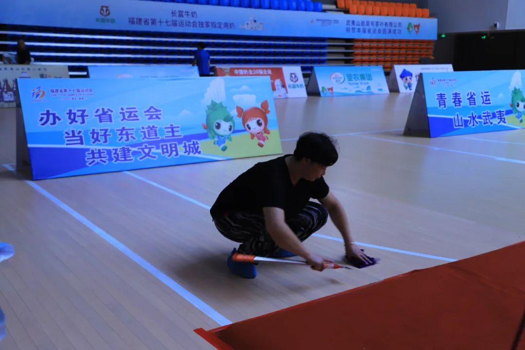 浦城大酒店报到处 当天上午,陆续到来的人员在一对一志愿者的引导下,积极配合疫情防控工作,有序扫码、测温进入浦城大酒店。负责迎接工作的服务组工作人员也第一时间对大家的到来表示欢迎,并协助办理入住手续,报到现场井然有序。 稍作休整后,技术官员进行实地检查比赛场地、器材等。场馆内,礼仪志愿者正在进一步熟悉流程,工作人员则在调试音响、检修电路,保洁人员在细心擦拭污渍……忙碌中有条不紊,力求做到精益求精,保障竞赛能顺利进行。