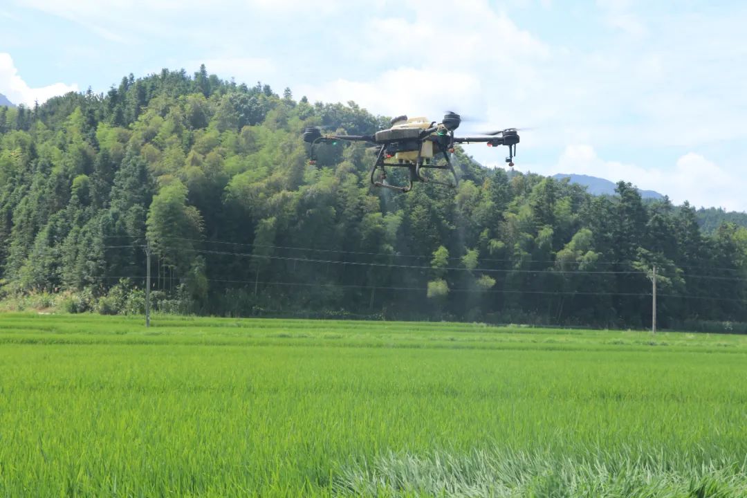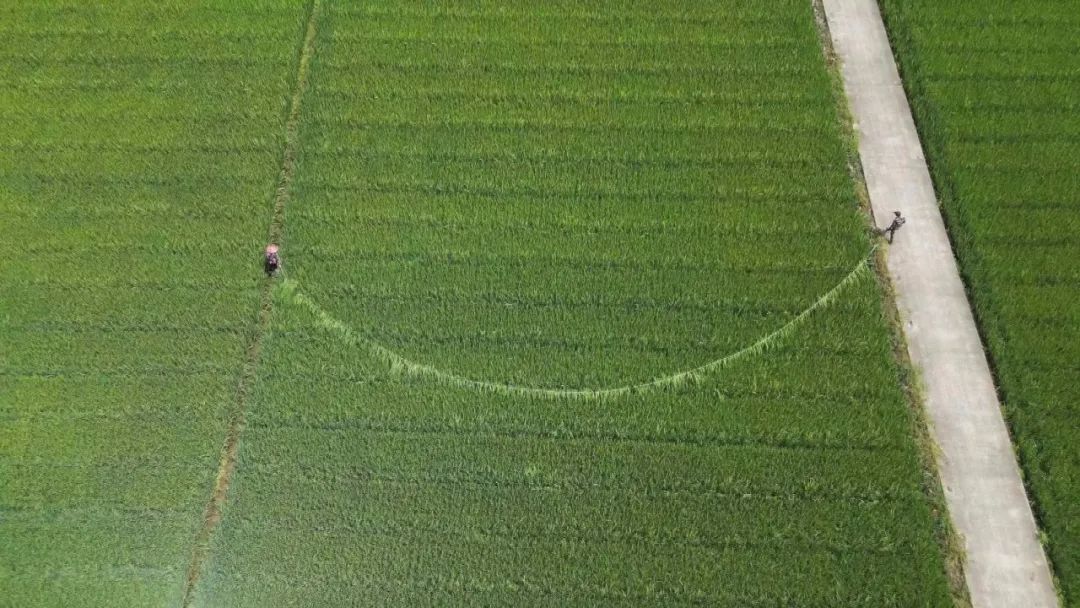目前正是水稻制种授粉结实和田间除杂保纯的关键时期。近日,当记者到浦城县忠信镇排栅村300亩水稻制种基地时,远远地就听到了一阵阵“呜呜”的轰鸣声,走近一看,原来是农户们正在给稻秧喷施“920”生长剂,人工、无人机交替喷施。
