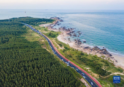 10月4日拍摄的海南环岛旅游公路文昌段景色和自驾游车辆(无人机照片)。 海南环岛旅游公路是建设海南自贸港和创建国际旅游消费中心的先导性重大基础设施项目,该公路主线全长988.2公里,串联沿途特色海湾、海角、特色小镇和旅游景区、滨海度假区等。“双节”假期,海南环岛旅游公路部分已开通路段吸引了大批游客前来自驾,带火了假期自驾游。 新华社记者 蒲晓旭 摄