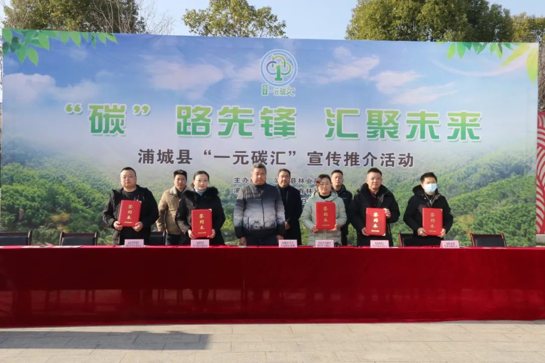 12月22日,浦城县举办“一元碳汇”项目宣传推介活动,副县长韩钢参加活动。 活动现场,浦城县丹洋生态国有林场与福建铭塔玩具股份有限公司、福建永鑫竹业有限公司、福建鑫隆达竹木科技有限公司、福建省浦城县利剑竹木制品厂、福建省浦城县诚发竹木有限公司5家企业代表签订“一元碳汇”认购协议,现场群众也认购了“一元碳汇”。