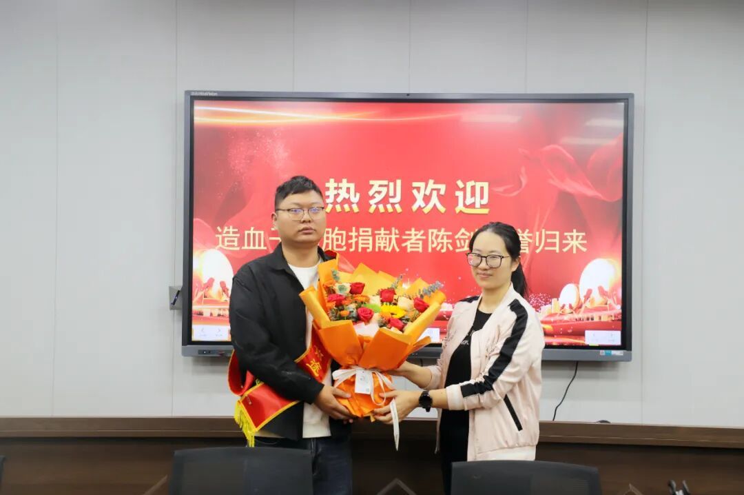 10月22日,浦城县红十字会举行了一场特别的欢迎会,迎接成功捐献造血干细胞的陈剑归来。这位27岁的退役军人,用无私大爱为一名素未谋面的血液病患者带去了生的希望,成为浦城县首位造血干细胞捐献者。 欢迎会现场 “这是我应该做的。”面对赞誉,陈剑如是说。五年的军旅生涯在他身上烙下了深深的印记,军人的责任与担当早已融入血脉。退役后,他将军营中的优良作风带到了工作岗位上,也带到了社会公益事业中。 2022年,在一次无偿献血时,他得知捐献造血干细胞可以挽救血液病患者的生命,便毫不犹豫地留存了血样,成为一名志愿者。“当时没想太多,就觉得这是件好事。而且父母很支持我的决定,让我捐献没有了后顾之忧。” 配型成功,正式确认捐赠造血干细胞(受访者供图) 今年7月,陈剑接到红十字会通知,告知他与一名患者配型成功。“那一刻,我感到很荣幸。”他说,“能够通过这样的方式帮助他人,让我的生命变得更有价值。” 然而,在体检阶段,一项偏高的指标险些让他与这次捐献失之交臂。为确保捐献顺利进行,陈剑立即调整生活习惯,并遵医嘱进行调理。最终,在复查中他的各项指标均达标,为捐献扫清了障碍。 捐献造血干细胞(受访者供图) 10月20日,在福建省肿瘤医院的采集室内,经过四个多小时的采集,陈剑顺利完成了造血干细胞捐献。捐献过程中,陈剑始终积极配合。“既然答应了,就一定要做到。”他希望通过自己的经历,让更多人了解造血干细胞捐献,“每个人的微小善举,都可能成为他人生命中的曙光。” 捐献期间,浦城县红十字会的志愿者全程守护在陈剑身边,提供了细致周到的服务。当陈剑在夜间出现身体不适反应时,志愿者及时响应,通宵陪伴,悉心照料,确保他能够安心完成捐献流程。 据悉,陈剑是福建省第548例、南平市第20例非亲缘造血干细胞捐献者。 欢迎会上,浦城县红十字会相关负责人对陈剑的大爱义举给予了高度赞扬,他的行为不仅挽救了一个生命,更弘扬了“人道、博爱、奉献”的红十字精神,呼吁更多健康的适龄市民能够主动了解并加入中华骨髓库,为在病痛中等待的患者送去生命的希望。(柯聪 程张寰) |