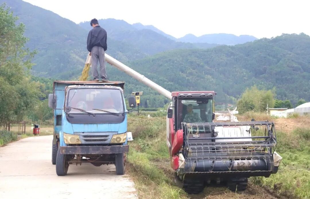 一次种植,两次收获。近日,在浦城县石陂镇申明村的再生稻示范田里,收割机在金黄的稻浪中穿梭,籽粒饱满的稻穗被尽数归仓。