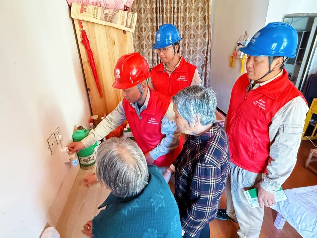 为老人活动中心更换老化电路设备 行动中,该公司富岭供电所工作人员分工明确,分别对幸福院的配电箱、室内线路、漏电保护装置及长者食堂的用电设备进行了全面细致的排查,重点对老人活动中心老旧开关、插座进行绝缘处理,及时更换老化线路设备。向幸福院工作人员及老人普及安全用电知识及低温天气用电注意事项,利用红外测温仪和无人机对周边线路开展特巡特护,并安装了25个带漏电保护的插座。采用“情景模拟+实物演示”方式,将专业术语转化为本地方言,温暖护航助力老人们易学易懂,安全高效使用新插座。