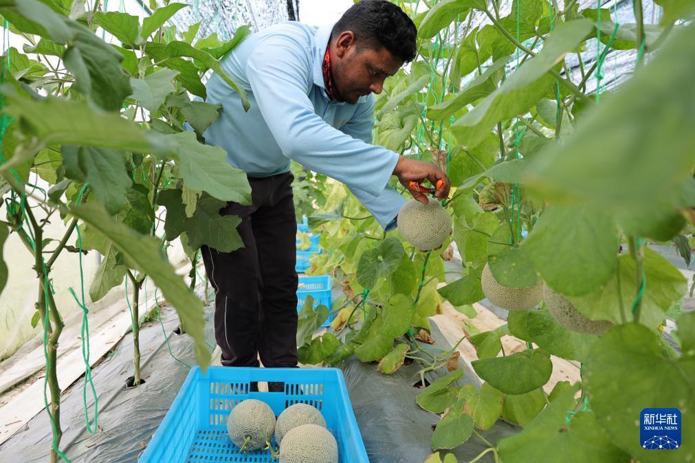 11月3日,在文莱斯里巴加湾市郊一处农业科技产业园,来自中国宁夏回族自治区固原市的农业技术专家李继华检查刚采摘下来的网纹蜜瓜。 近年来,文莱政府不断深化与中国在农业领域的交流合作。在文莱斯里巴加湾市郊一处农业科技产业园,通过中国沙培技术成功种植的网纹蜜瓜近日喜获丰收,在当地市场很受欢迎。此外,该产业园还利用中国先进农业技术及农业设备开展草莓、茄子、辣椒等果蔬的培育种植,在为文莱市场提供高品质果蔬产品的同时,进一步推动文莱农业现代化发展。 新华社记者 李萌 摄