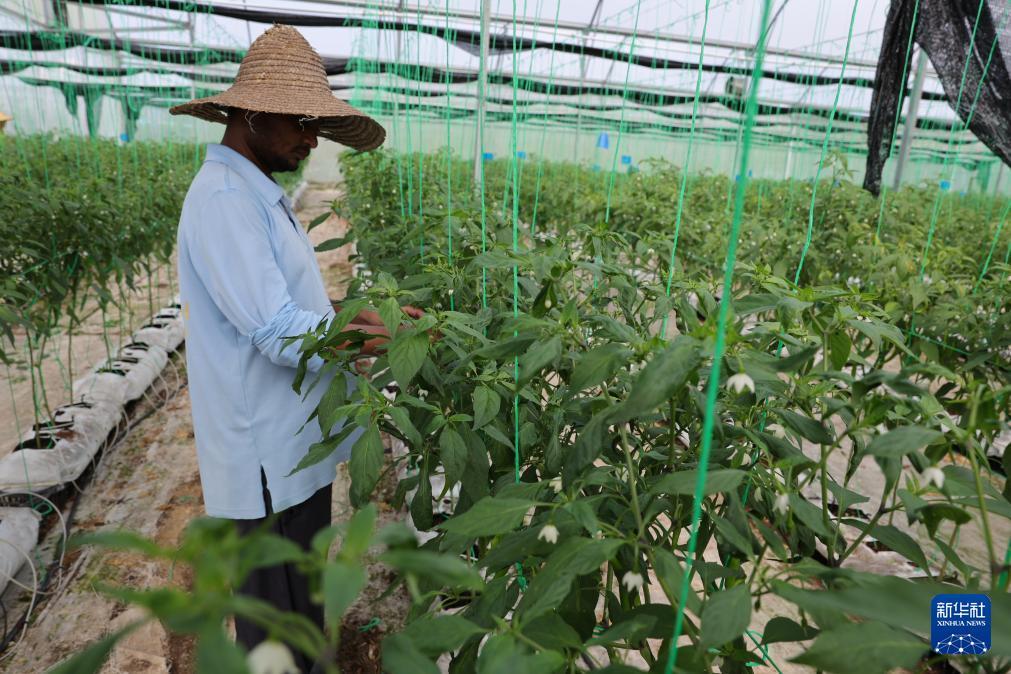 11月3日,在文莱斯里巴加湾市郊一处农业科技产业园,来自中国宁夏回族自治区固原市的农业技术专家李继华查看用水培技术种植的蔬菜的生长情况。 近年来,文莱政府不断深化与中国在农业领域的交流合作。在文莱斯里巴加湾市郊一处农业科技产业园,通过中国沙培技术成功种植的网纹蜜瓜近日喜获丰收,在当地市场很受欢迎。此外,该产业园还利用中国先进农业技术及农业设备开展草莓、茄子、辣椒等果蔬的培育种植,在为文莱市场提供高品质果蔬产品的同时,进一步推动文莱农业现代化发展。 新华社记者 李萌 摄