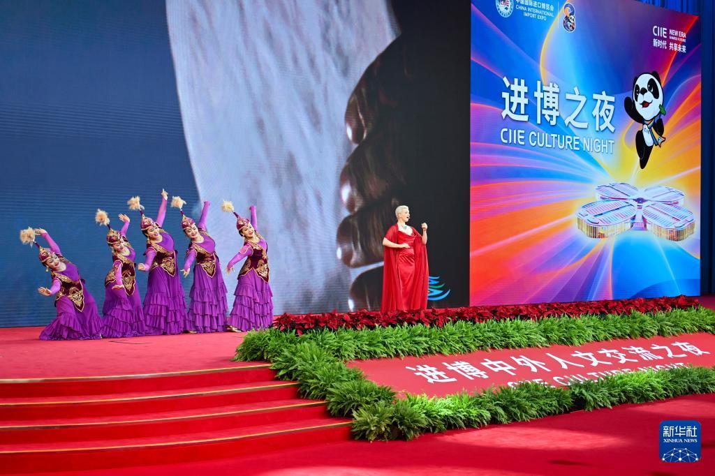 11月6日,演员在“进博中外人文交流之夜”文艺演出上表演。 11月6日,在第八届中国国际进口博览会举办期间,“进博中外人文交流之夜”文艺演出在国家会议中心(上海)举行。 新华社记者 陈浩明 摄