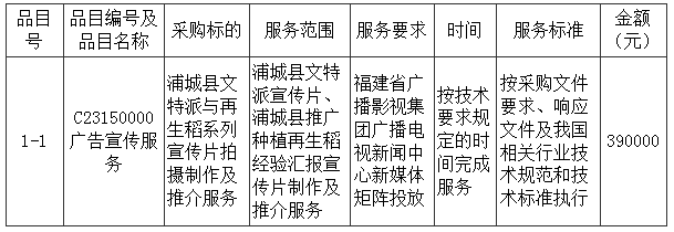 浦城县文特派与再生稻系列宣传片拍摄制作及推介服务采购项目结果公告