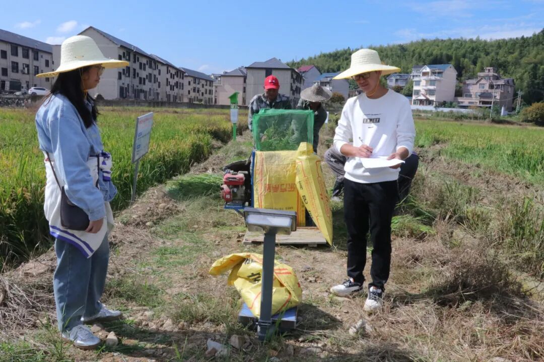 活动现场 在浦城县万鑫农机服务专业合作社的试验田块里,成片的再生稻随风起伏。专项人员首先介绍了头季不同机型收割的田块,随后协调组、测产组、后勤调度组等多个工作小组有序开展了理论测产、实割测产、机械收割、数据整理等环节。在人工收割与机械收割对比试验区,针对直行碾压、转弯碾压及未碾压等不同区域进行采样、脱粒与称重,系统分析机械作业对再生稻产量的影响。