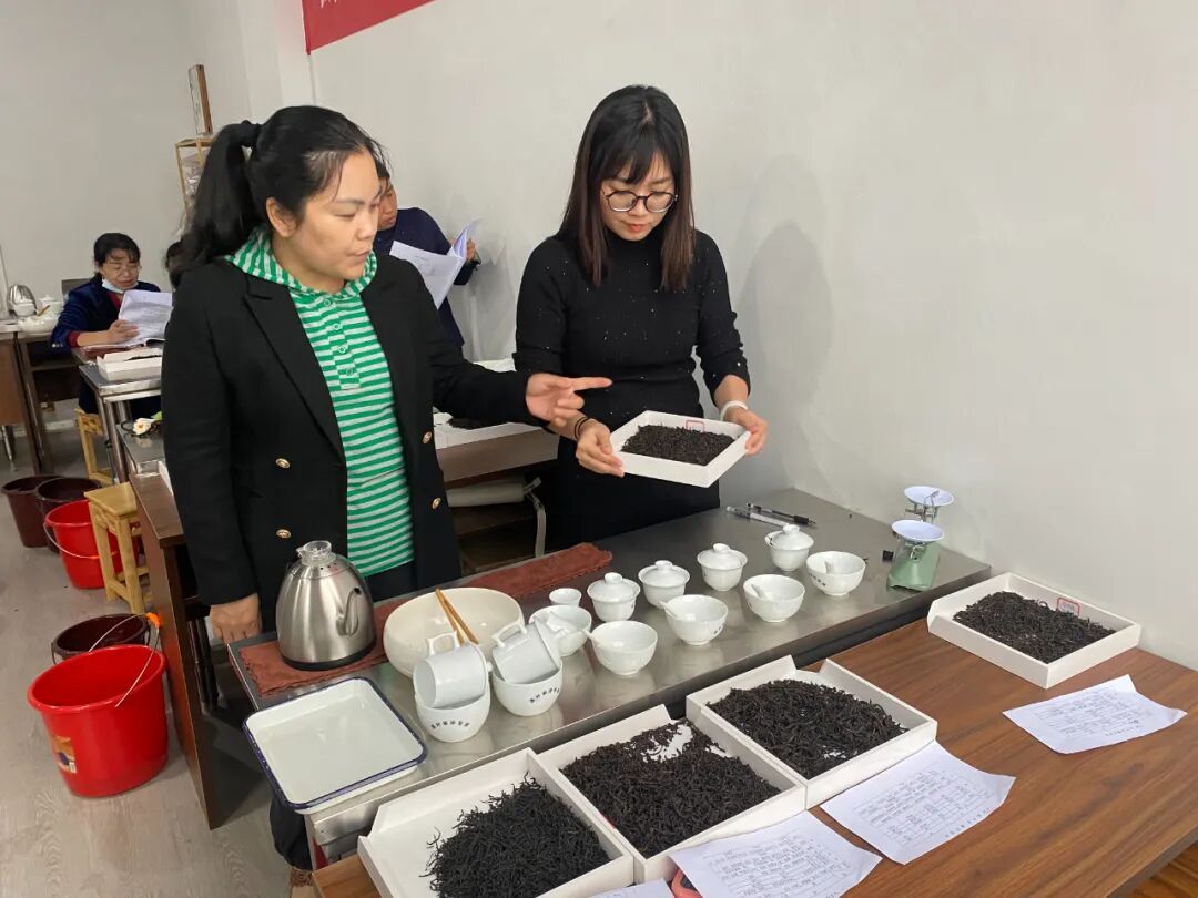 廖美蓉(左)到高山上查看丹桂花品质 创业初期,困难接踵而至。为了方便茶叶运输,廖美蓉按规定申请政府批准后,计划修建一条通往茶山的道路。然而,部分村民因担心自身利益受到影响,对修路工作百般刁难,甚至开出了高价要求,让工程一度陷入停滞。 “土地就是很多村民的根子,我很能理解村民的心态,我要做的不是气愤,而是解决。”廖美蓉笑着说。面对这一困境,她没有选择争执,而是从长远利益出发,以包容和退让的态度积极与村民沟通,最大限度保障村民权益。最终,道路顺利建成,不仅解决了茶山运输难题,还为周边村民的果蔬运送提供了便利,实现了“修一条路,惠一方人”的共赢局面。 基地步入正轨后,廖美蓉始终秉持着带动家乡发展的使命感,积极吸收当地村民就近就业。如今,基地每年支付人工费用近90万元,采茶旺季时招收工人50余人,常年固定员工10余人,有效带动了村财增收和村民致富,让更多人在家门口实现了就业增收的梦想。 攻克难关:从零学起,用技能铸品质 2015年,廖美蓉投入心血打造的茶山终于迎来回报,但新的难题又摆在了她面前。作为茶产业的“门外汉”,如何提升茶叶品质成为制约基地发展的关键。面对这一挑战,廖美蓉没有退缩,而是以顽强的毅力开启了学习之路,决心用技能改变茶叶质量。 通过拜师学艺、上专业培训课、听专家讲座等多渠道学习方式,廖美蓉评茶技能逐步提高,顺利通过评茶员、制茶师等考试。“平时主要在于多学、多想、多积累,在潜移默化中融会贯通。”廖美蓉回忆道,压力最大的时候是一周要进行三次考试。那时,廖美蓉开启了“闭关”苦读模式,终于,功夫不负有心人,她顺利通过考试获得国家一级评茶员、一级茶叶加工技师、二级茶艺技师资格,获评“南平市技能大师”,并获得南平市人力资源和社会保障局等批复,成立了“廖美蓉评茶员技能大师工作室”。