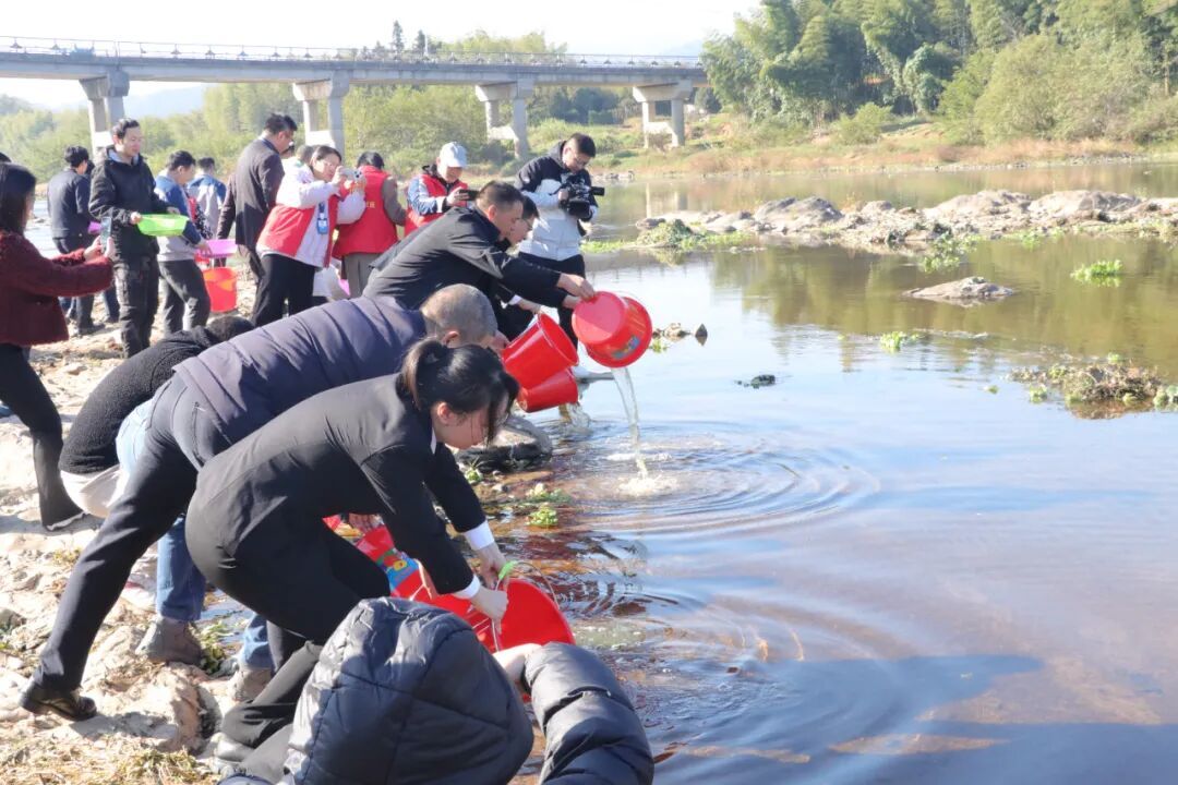 浦城正大生化有限公司联合多部门开展南浦溪增殖放流活动
