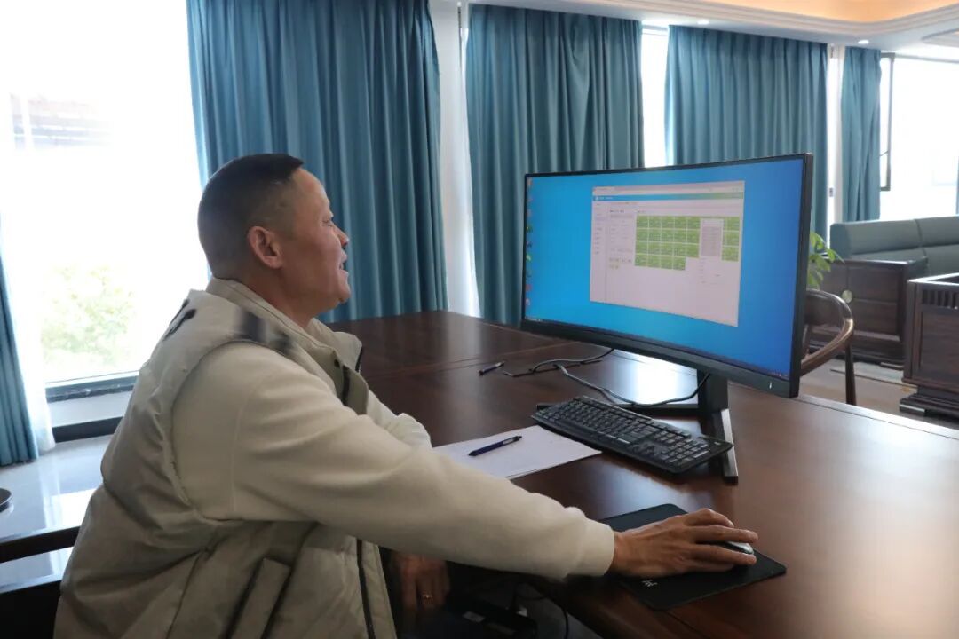 程显图线上监控厂内各设备情况 “品质是让客户满意的根本,我们通过设备技改与研发创新双轮驱动,筑牢产品质量防线。”显图纺织董事长程显图指着车间内的智能检测设备介绍道,“2024年,公司建成标准厂房2幢、宿舍楼2幢及辅助设施,新购纺织设备300台及相关辅助设备。这款设备升级为智能化后,能精准采集并显示布面各项数据,不仅有效提升了产品品质,更实现了生产效率的飞跃与人力成本的优化。”如今,借助智能数据系统,1名工人可轻松管控30台设备,工作效率大幅提升。为了形成质量检测闭环,该公司还专门配备专业质检员进行全程值守,细致排查布面微小瑕疵,确保不合格产品绝不出厂。