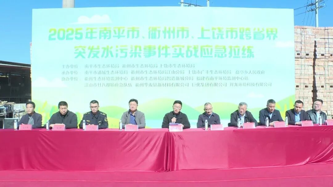 南平市、衢州市、上饶市跨省界突发水污染事件实战应急拉练 南平市浦城县盘亭溪地处闽浙赣三省交界,作为信江源头之一,其水质安全直接关系长三角南翼数百万居民的饮水安全。这里不仅是生态敏感区,更是跨省环境风险防控的“前沿阵地”。提升环境应急实战能力,及时妥善科学处置各类突发环境事件,是守牢流域环境安全底线的重要组成部分。 本次拉练模拟装载30吨柴油的罐车在闽浙交界路段发生交通事故侧翻后,南平浦城、衢州江山、上饶广丰共同应对次生突发环境事件的过程。拉练中,交通事故导致柴油进入353国道周边水体盘亭溪,威胁到下游衢州-南平跨省界断面及靖安大桥国控断面水质。通过上下游协同、跨地区联动、多部门协作,综合采取源头阻断、拦污截污、水利调度等多种措施后,确保了污染水体未流入上饶市,未造成跨省污染。