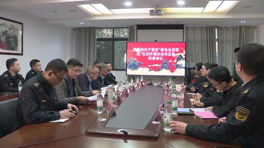 南衢饶关于落实“绿色生态联盟”生态环境执法与应急联席会议 当日下午,活动转入跨界流域联合巡查阶段。福建省生态环境保护综合执法总队邓宣优支队长、苏美云四级调研员全程参与督导,实地检验跨省协作机制实效。在浦城县盘亭乡召开的联席会议上,邓宣优强调要健全协同机制,让跨区域问题“发现即通报、线索即移交、处置即联动”,合力打击跨区域环境违法行为。随后,福建南平、浙江衢州、江西上饶三地市代表现场签定《南衢饶关于落实“绿色生态联盟”生态环境执法与应急方面的五项措施(试行)》,并就跨界流域上下游的生态环境执法工作进行深入交流。联合巡查组还先后赴江山市廿八都地表水监测站、浮盖山森林公园、浦城县盘亭乡跨界流域监测站及广丰区二渡关村靖安大桥等点位现场巡查。 |