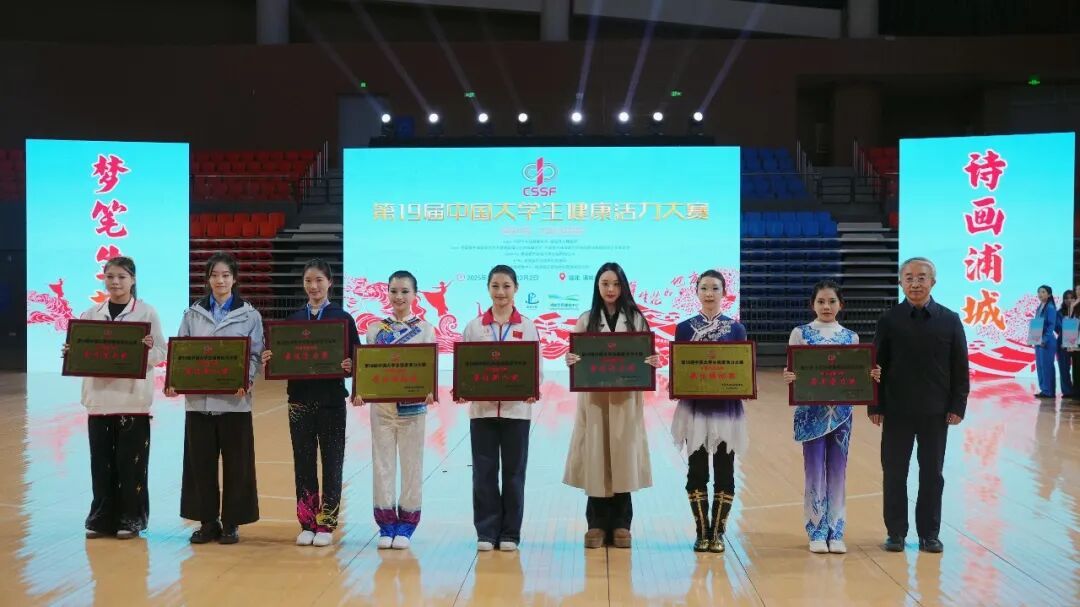 为获奖运动员颁奖 最终,获得第19届中国大学生健康活力大赛健身排舞团体冠军的单位有:四川外国语大学、陕西国防工业职业技术学院、海南体育职业技术学院、泉州师范学院、宿州学院;获得第19届中国大学生健康活力大赛中国风健身舞团体冠军的单位有:大连财经学院、西安外国语大学、常州工业职业技术学院、海南体育职业技术学院、阜阳师范大学、安徽新华学院。 随着最后一枚奖牌颁发完毕,第19届中国大学生健康活力大赛正式落下帷幕。这场体育盛会,不仅为全国大学生提供了展示自我的平台,也为浦城“体育+文旅”融合发展注入强劲动力,进一步提升了城市知名度与影响力。未来,浦城将继续引进更多国家级、省级体育赛事,让更多人走进浦城、了解浦城、爱上浦城。(黄竟轩) |