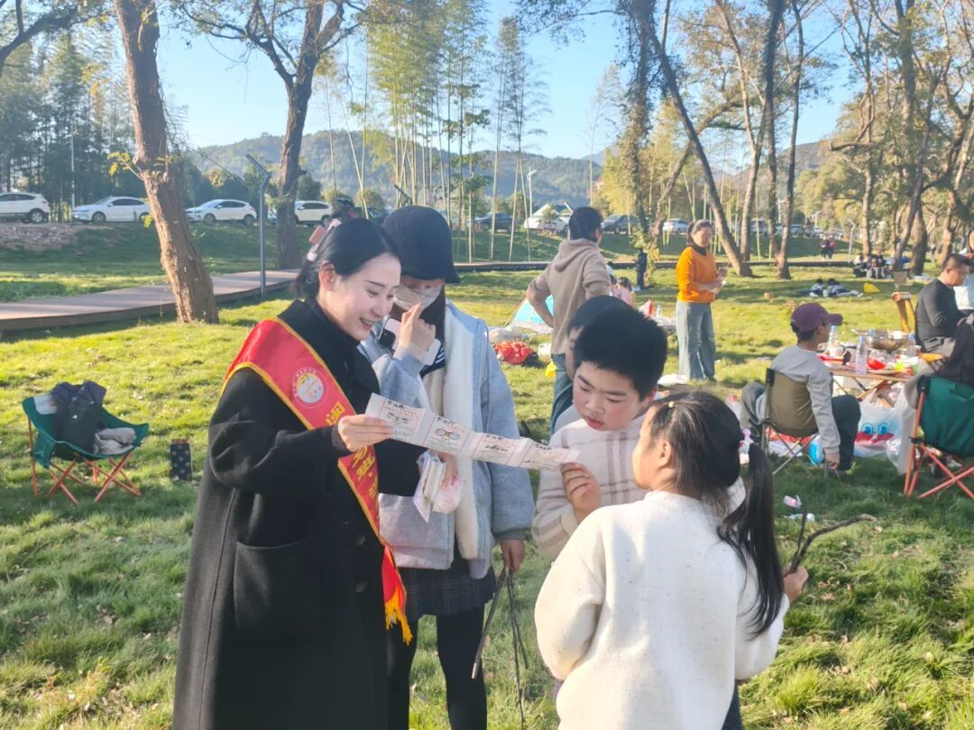 富岭镇 当理论宣讲从会议室搬到山水之间,会碰撞出怎样的火花?近日,在浦城县富岭镇瑞安溪林里,一场别开生面的“公园微宣讲”吸引了众多周末出游的游客和小朋友。这是富岭镇创新基层理论宣讲方式,推动党的二十届四中全会精神“飞入寻常百姓家”的生动一幕。 活动现场,“福小宣·闽北讲习班·‘浦’新篇”宣讲员周静兰、雷进伟,以眼前的绿水青山为“实景教案”,用亲切的乡音土语,向游客和孩子们讲解生态文明建设的重要性。“绿水青山就是我们身边的什么呀?”一个个贴近生活的小提问,将宏大的理论命题转化为孩子们能听懂的道理,引导大家在美景中思考人与自然的和谐共生。
