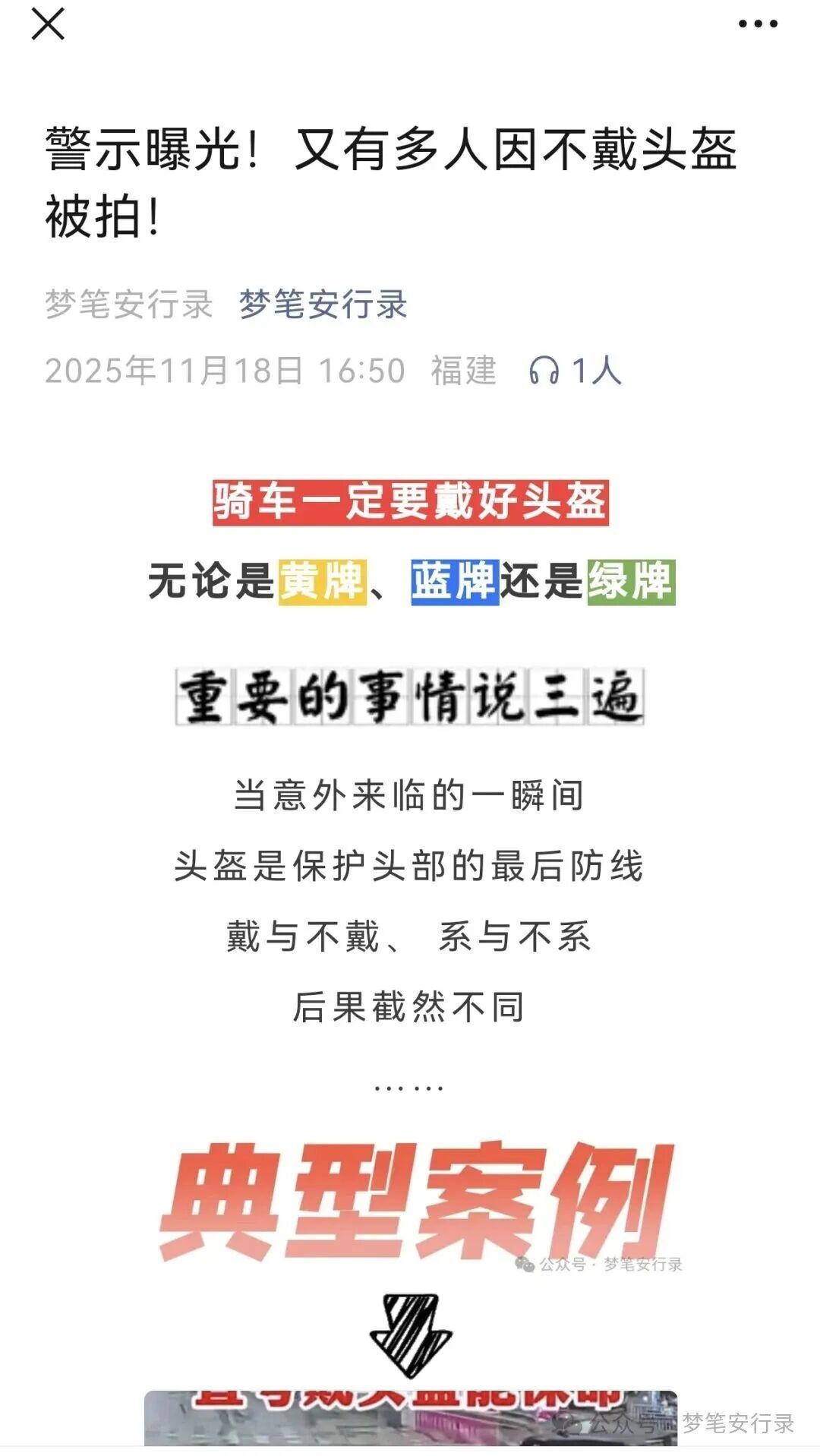 “头盔是骑行者遇到危险时的最后一道防线。”为进一步提升电动车骑乘人员安全防护水平,浦城公安交警持续加强“一盔一带”安全守护行动。 对于“戴了头盔却不戴”的行为,进行重点纠正,督促其立即佩戴。对于多次劝导无效或拒不配合的,依法予以处罚。引导群众养成“不带盔,不骑行”的文明出行习惯。 优化交通设施 提升道路通行安全