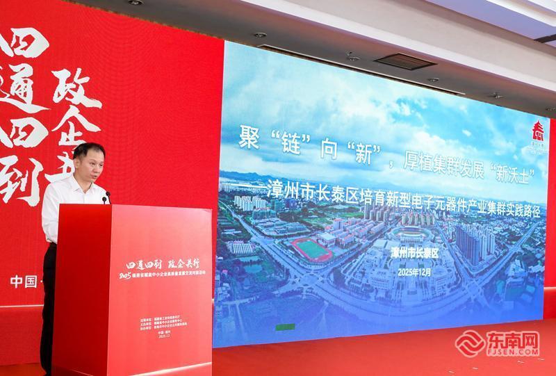 漳州市长泰区代表分享新型电子元器件国家级产业集群的建设经验 漳州市长泰区代表分享新型电子元器件国家级产业集群的建设经验,人工智能、出海发展、专精特新培育等领域的专家分别作主题分享,为中小企业转型升级提供前沿思路和实用路径。 据介绍,服务企业“四通四到”机制实施以来,省工信厅通过发挥“政企直通车”、福建省工业企业供需对接平台作用,着力破解企业发展堵点难点,推动惠企政策精准落地,全力打造一流营商环境,促进企业高质量发展,服务做法获评2025年全国“服务企业在基层”典型案例。 省工信厅相关负责人表示,下一步,将进一步强化双平台功能融合与数据赋能,推动企业诉求高效办理、惠企政策直达快享、产业链协同精准顺畅,不断健全中小企业全周期梯度培育体系,助力更多专精特新企业脱颖而出。 |