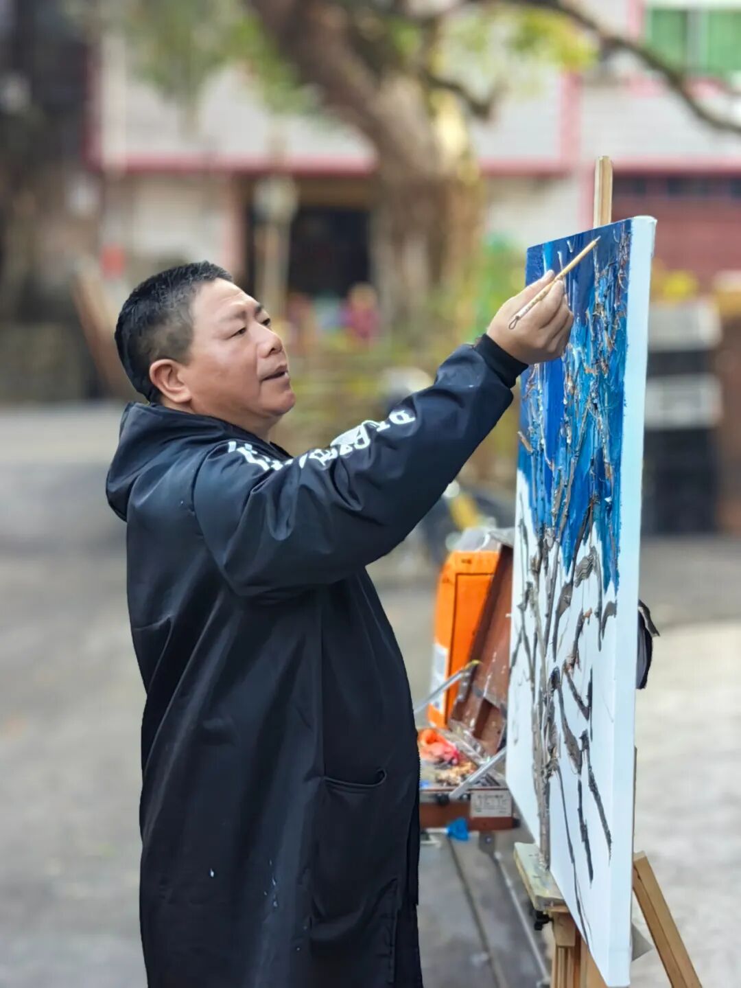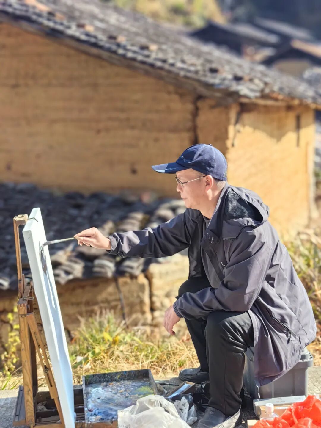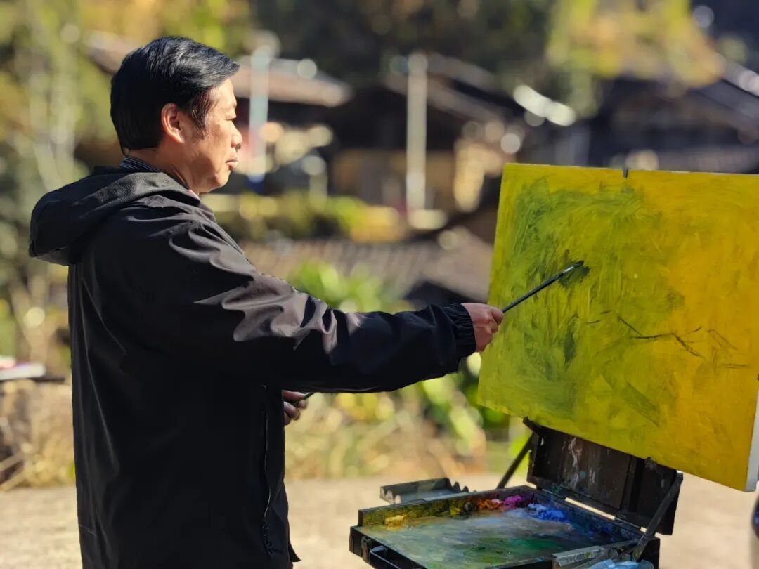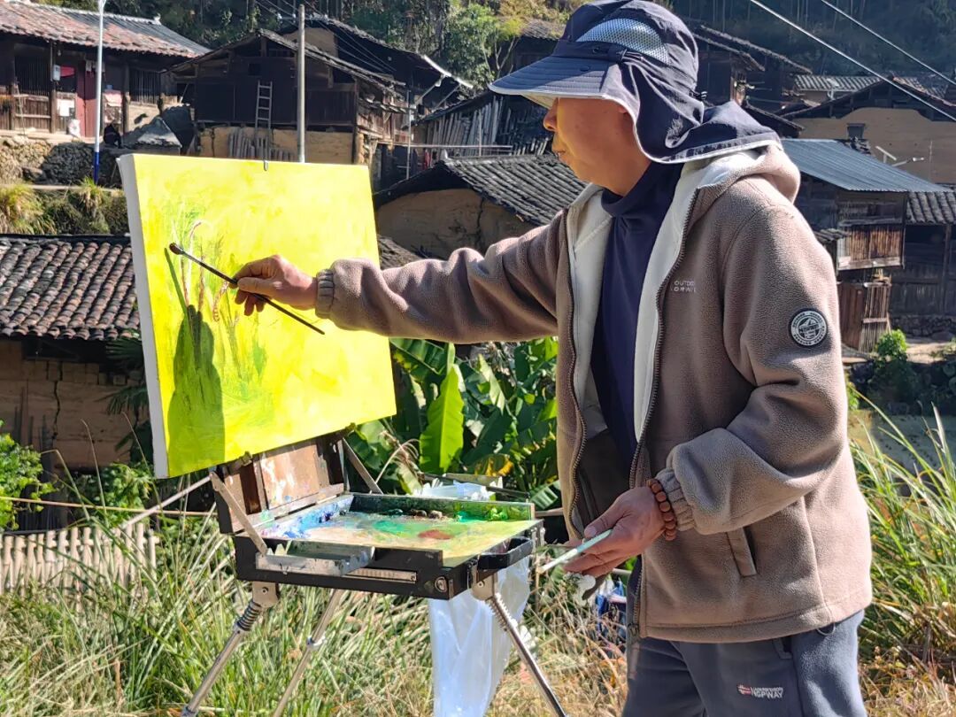 红纸迎春,笔走福至 丹青行野,纸上田园 午后阳光正好,画家们背起画板、拎起小马扎,沿着枫岭古驿道分组“打卡”。有的蹲在田埂,以稻茬作前景,远处黛瓦粉墙入画;有的钻进百年古树群,让金黄落叶在宣纸上“二次绽放”;还有的直接把画架支在溪涧边,听水声调色,任山风“修改”线条。三个小时后,十几幅“枫溪冬野”速写整齐亮相氧8大厅:山岚、炊烟、古树、石拱桥……每一幅都在“喊”同一句话——“把乡村带回家”。