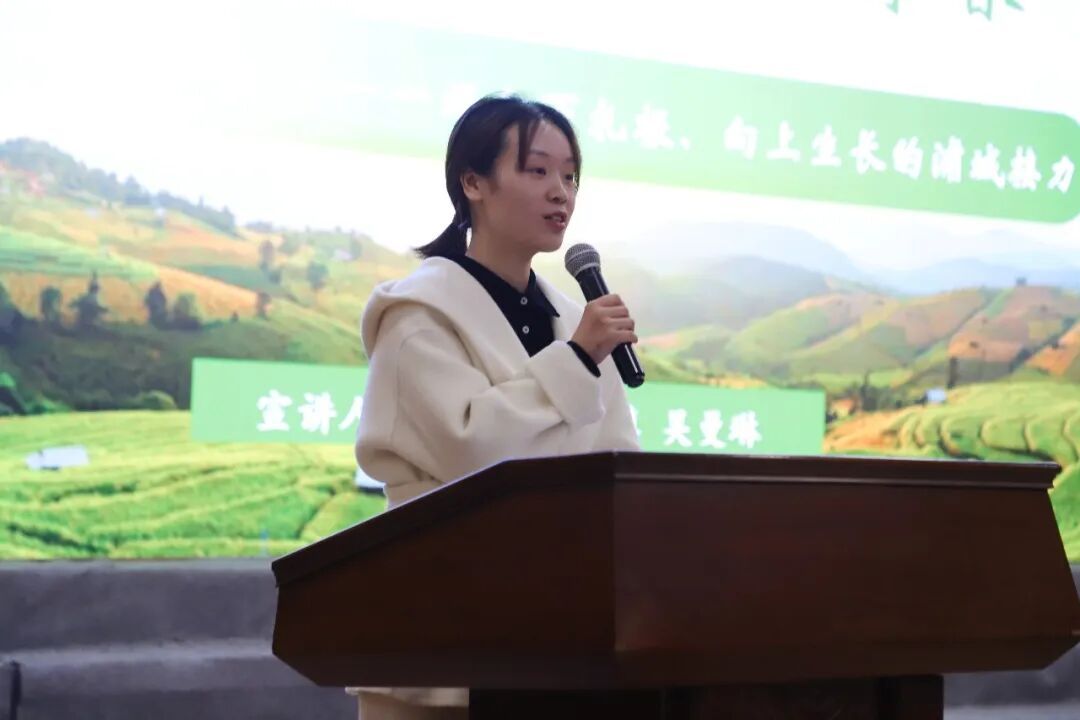 宣讲现场 三位优秀青年讲师结合自身经历与工作实际,用“青言青语”传递党的理论主张,让全会精神直抵青年心间。浦城县富岭镇党委宣传委员吴曼琳以《那山、那人、那青春》为题,分享了扎根基层、奉献青春的动人故事,展现了青年干部在乡村振兴一线的责任与担当,让在场青年感受到了基层工作的价值与意义;浦城县公安局仙阳森林派出所教导员吕泽轩带来《闻“汛”而动,“警”急守护》的宣讲,通过真实的防汛救灾案例,讲述了青年民警挺身而出、守护群众生命财产安全的坚守与无畏,彰显了青年一代的使命与担当;福建省浦城职业技术学校教师、南平市青年讲师团成员伍宇婧围绕《牢记嘱托担使命,砥砺奋进谱新篇》展开宣讲,解读党的二十届四中全会精神的核心要义,引导广大青年牢记嘱托、勇担使命,在新时代新征程中奋勇争先。