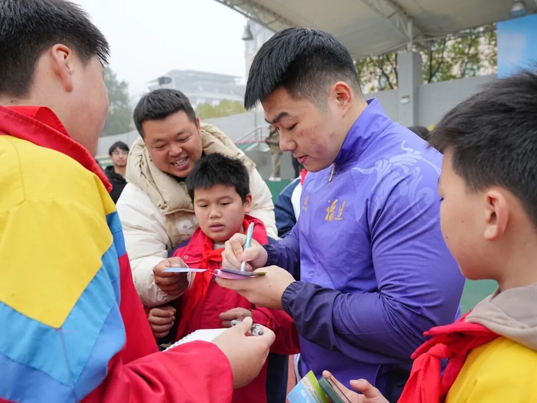 与运动会冠军互动 “看到运动会冠军,我觉得他们的拼搏精神和努力,还有他们的汗水给我们非常大的启发。因为我带着我们家小朋友来参加比赛,我觉得这是她学习奥运冠军的一个很好的机会,学习他们的拼搏精神。”学生家长何星说。 学生家长邓雨欣说:“第一次近距离接触运动会冠军,心里满是激动和敬佩,而这次活动对孩子来说更有意义,这种永不言弃的精神真的特别有感染力,更是在孩子心中种下了一颗梦想和奋斗的种子。” 现场活动结束后,嘉宾们前往浦城美术馆/范迪安美术馆报告厅参与交流研讨。李发彬、赵永超、曾津津分别登台,分享各自的夺冠历程。体育界领导、嘉宾与现场观众互动交流,围绕体育教学、运动员培养、校园足球发展等话题分享经验与心得。