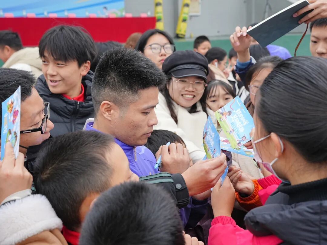 与运动会冠军互动 本次活动由浦城县教育局、县文体和旅游局联合主办,旨在以冠军引领激发青少年运动热情,推动体教融合走深走实。活动特邀东京、巴黎两届奥运会举重冠军李发彬,2017年亚洲举重锦标赛冠军、第十五届全运会举重亚军赵永超,以及第十五届全运会女子沙滩排球冠军曾津津,福师大体科院首席专家、全国校园足球纪律委员会委员蔡向阳,原国家举重男子队总教练、第十二届全国人大代表陈文斌,福建省青少年体校举重国家级教练员陈孝铭,福建省足球协会副主席钟文琴亲临现场。 活动共吸引全县1400余名师生及家长踊跃参与,共同投身这场充满活力的体教融合盛会,为浦城校园足球发展汇聚热情与支持。三位冠军与亲子家庭展开趣味互动,以专业视角和亲切姿态点燃全场运动激情,为浦城青少年体育事业注入强劲的“冠军力量”。