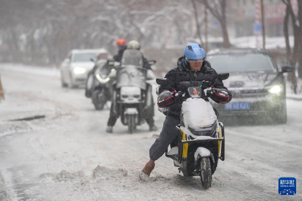 12月23日,骑手冒雪在哈尔滨市区骑行。 12月23日14时,哈尔滨市气象台发布暴雪黄色预警信号。 新华社记者 王建威 摄