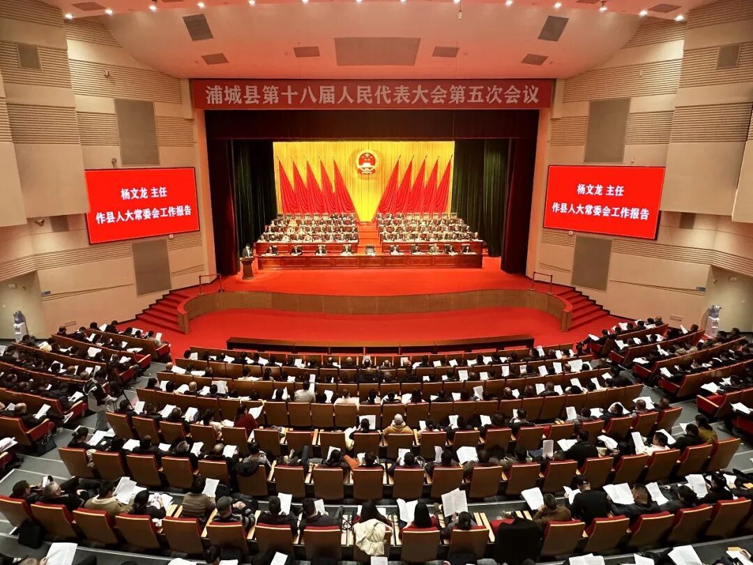 县人大常委会主任杨文龙向大会作《浦城县人民代表大会常务委员会工作报告》。 报告指出,2025年是实施“十四五”规划的收官之年,一年来,浦城县人大常委会坚持以习近平新时代中国特色社会主义思想为指导,全面贯彻党的二十大和二十届二中、三中、四中全会精神,深入学习贯彻习近平总书记在福建考察时的重要讲话精神,坚持党的领导、人民当家作主、依法治国有机统一,认真践行全过程人民民主,全面履行宪法法律赋予的职责,坚持稳中求进、守正创新、上下联动,主动担当作为、依法履职尽责,不断推动人大工作高质量发展。 杨文龙在报告中从四个方面回顾过去一年县人大常委会工作所取得的成效: 1 始终坚持党的领导,牢牢把握人大工作的正确方向。 2 始终围绕全县中心发展大局,有效发挥监督职能。 3 始终密切联系代表和群众,积极践行全过程人民民主。 4 始终加强自身建设,不断提升机关履职能力水平。 在新的一年里,县人大常委会工作的指导思想和总体要求是: 坚持以习近平新时代中国特色社会主义思想为指导,全面贯彻党的二十大和二十届二中、三中、四中全会精神,深入学习贯彻习近平总书记在福建考察时的重要讲话精神,认真践行习近平法治思想、习近平总书记关于坚持和完善人民代表大会制度的重要思想,坚持党的领导、人民当家作主、依法治国有机统一,发展全过程人民民主,坚持好、完善好、运行好人民代表大会制度,深入贯彻落实县委的部署要求,围绕“四个机关”目标任务,全面履行宪法法律赋予的职责,稳中求进推动人大工作高质量发展,为推动中国式现代化浦城实践走深走实作出人大应有贡献。