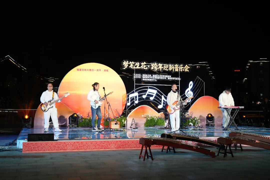 辞旧迎新启华章,福满浦城庆新年。12月31日,“梦笔生花”系列活动之梦笔生花·跨年迎新音乐会在浦城县梦笔文化公园亲水平台精彩举行,广大市民齐聚一堂,在旋律与欢笑中告别旧岁、喜迎新年。