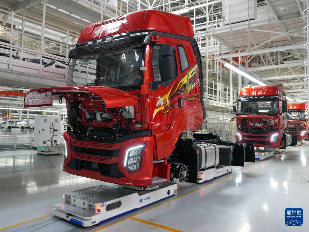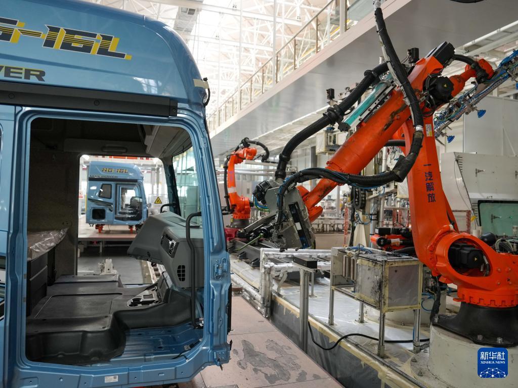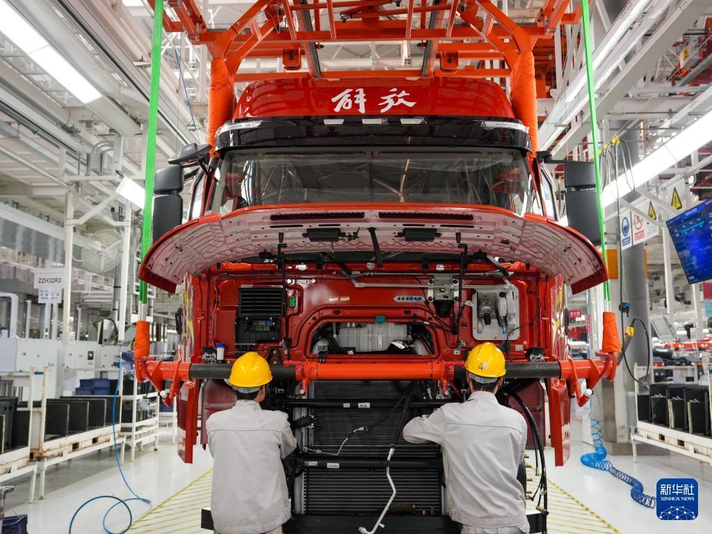 1月4日,工人在一汽解放J7整车智能工厂装配车辆。 新年伊始,坐落于吉林省长春市的一汽解放J7整车智能工厂内,工人们开足马力抓紧生产,力争实现新年“开门红”。2025年,一汽解放全年销售整车突破28万辆。 新华社记者 张楠 摄