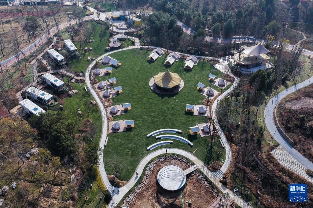 空中俯瞰金华市金东区金漪湖云蝶中心的露营基地(1月8日摄,无人机照片)。 近年来,浙江省金华市金东区持续探索运用文化、运动、音乐等新元素融合文旅资源,打造包括体育公园、露营基地、乡村老街、陶瓷文化艺术馆等在内的特色文旅新消费场景,引入多样化的文旅新体验、新玩法,展现城市风采,推动全域旅游品质提升,不断创新文旅经济业态及消费场景,激发消费新活力。 新华社记者 徐昱 摄