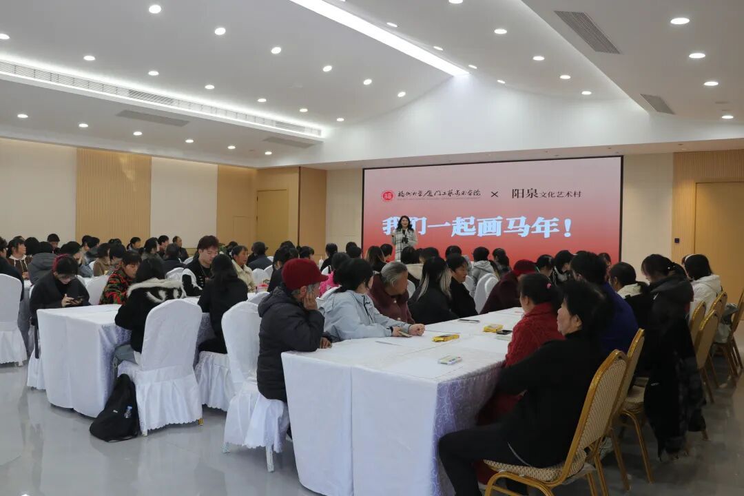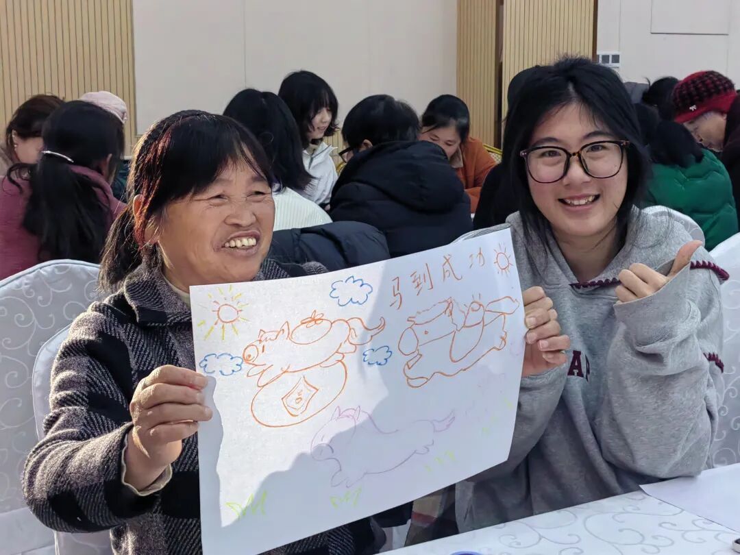 ▲学生们与村民一起画马年 活动中,学生们与村民并肩而坐,共执画笔“画马年”。一幅幅生动图画跃然纸上,艺术成为连接情感的纽带。画笔传递着对新春的祝愿,也在色彩交错间加深了大家对乡村文化的理解。这种互动不仅让艺术落地生根,也唤起了村民对自身文化的认同与自信。