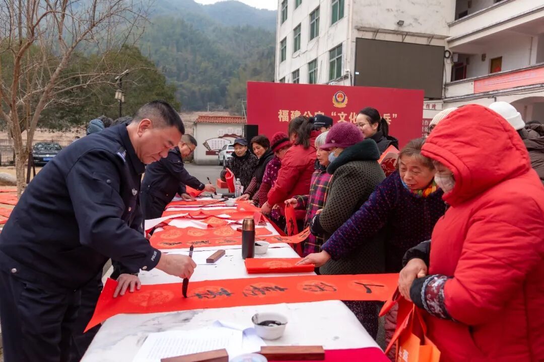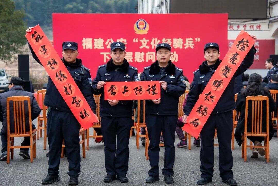 1月22日,福建省公安厅以笔墨为媒、以文化为桥,组织“文化轻骑兵”下基层慰问活动走进位于福建省最北端的浦城县公安局九牧派出所,为当地的民辅警及辖区群众送上一场“文化盛宴”,将艺术之美与平安祝福根植于乡村沃土。
