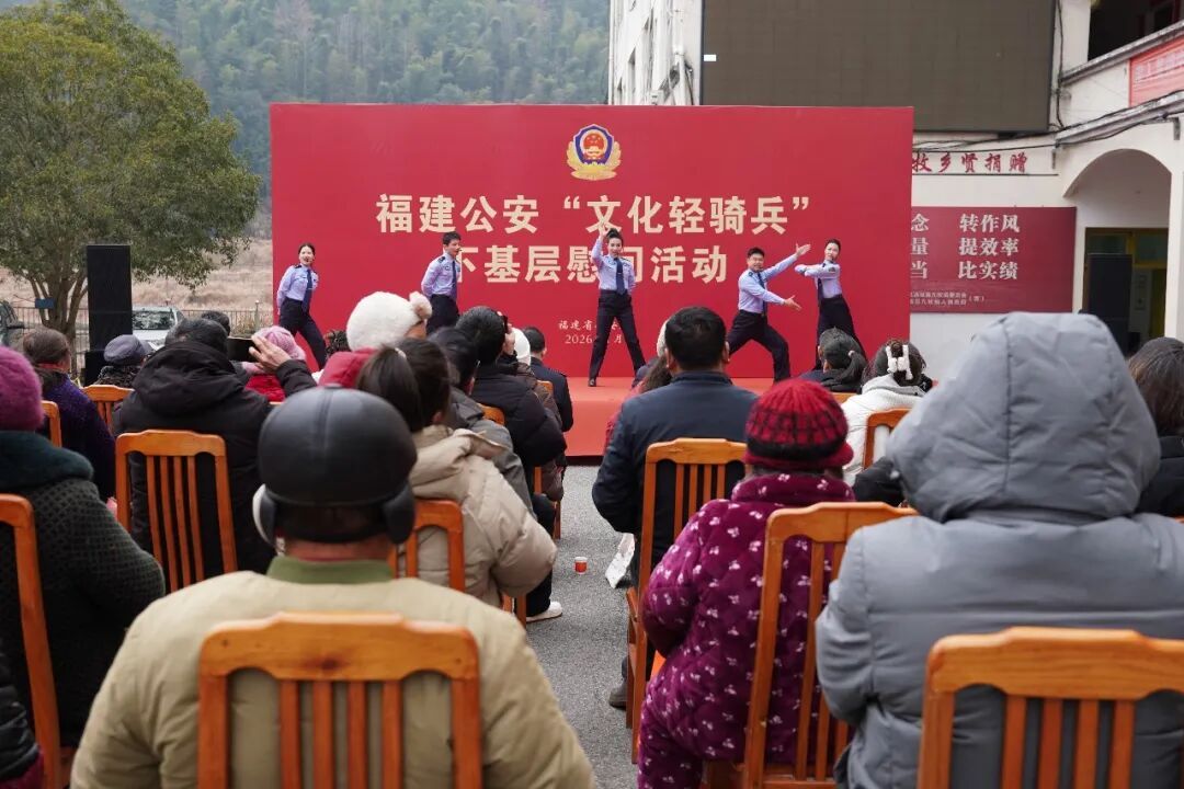 ▲福建公安文化下基层慰问活动 慰问展示在歌曲《我们都是追梦人》的旋律中拉开帷幕,民警的倾情演唱点燃全场热情,魔术、安全知识互动、歌舞等流程轮番呈现,赢得观众阵阵掌声。现场还开展了写春联送祝福活动,一幅幅饱含平安喜乐寓意的对联,让群众争相领取,尽显警民同乐的祥和氛围。活动特邀浦城剪纸省级代表性传承人参与,把温情剪纸送到群众手中,以指尖技艺传递警民同心的暖意。同时,民辅警围绕禁毒防毒、电信诈骗、交通安全等内容,通过发放宣传手册、剖析典型案例、现场答疑等方式普及法律法规和安全知识,将文化体验与法治宣传深度融合。
