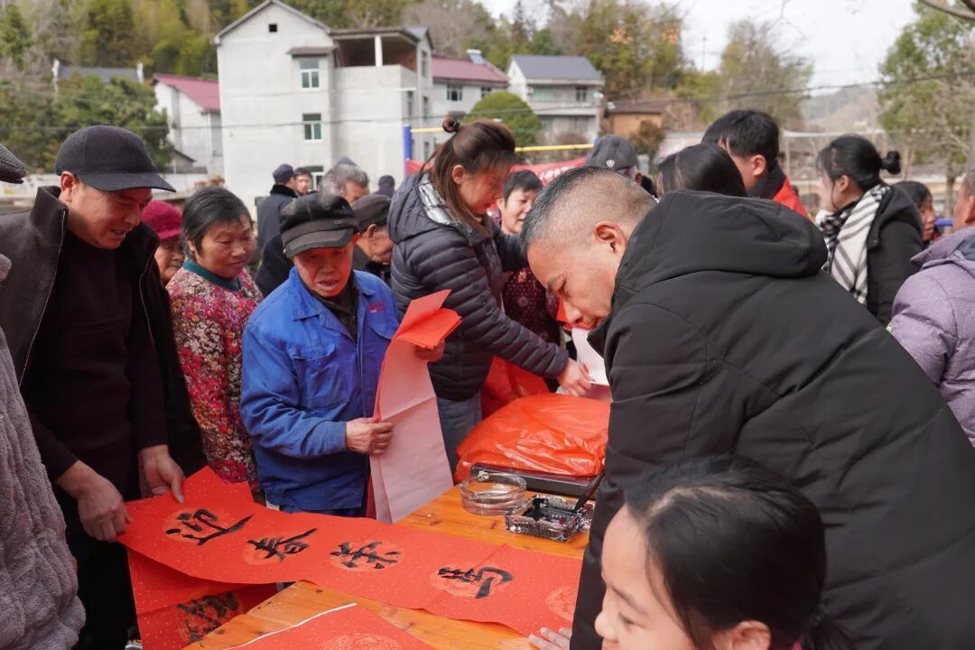 2月3日,“翰墨书香送福至 非遗焕彩润乡村”新春主题活动暨“强基工程”2026新春特别行动在浦城县盘亭乡深坑村村委会举办,为村民们送上了一份充满传统韵味与文化温度的新春贺礼。这场集书法、非遗、互动于一体的文化盛宴,是盘亭乡深坑村文化特派员、驻村第一书记何晓玲牵头统筹,联合浦城县文联、浦城县文化馆、深坑村新时代文明实践站及浦城县书法家协会精心策划的文化惠民举措。 活动现场,长桌铺开,红纸舒展。书法家们挥毫泼墨,笔走龙蛇,一副副寓意吉祥的春联和一个个饱满圆润的“福”字跃然纸上。村民们围在书桌旁,挑选心仪的联句,或根据自家喜好定制内容,脸上洋溢着喜悦的笑容。“这手写的春联,比买的更有年味,希望以后多办这样的好活动!”村民柴炳坤手捧墨迹未干的春联开心地说。