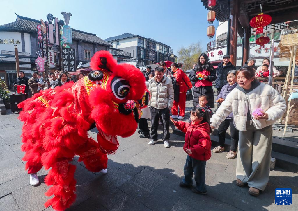 2月8日,在寿昌古镇老街上,舞狮演员跟游客互动。 近期,浙江省建德市寿昌古镇举办传统民俗迎新春活动,民俗踩街、舞龙舞狮、马年主题灯展等活动,吸引八方游客前来体验古镇传统年味,进一步激活新春消费市场,为当地文旅经济发展注入新动能。 新华社记者 徐昱 摄 |