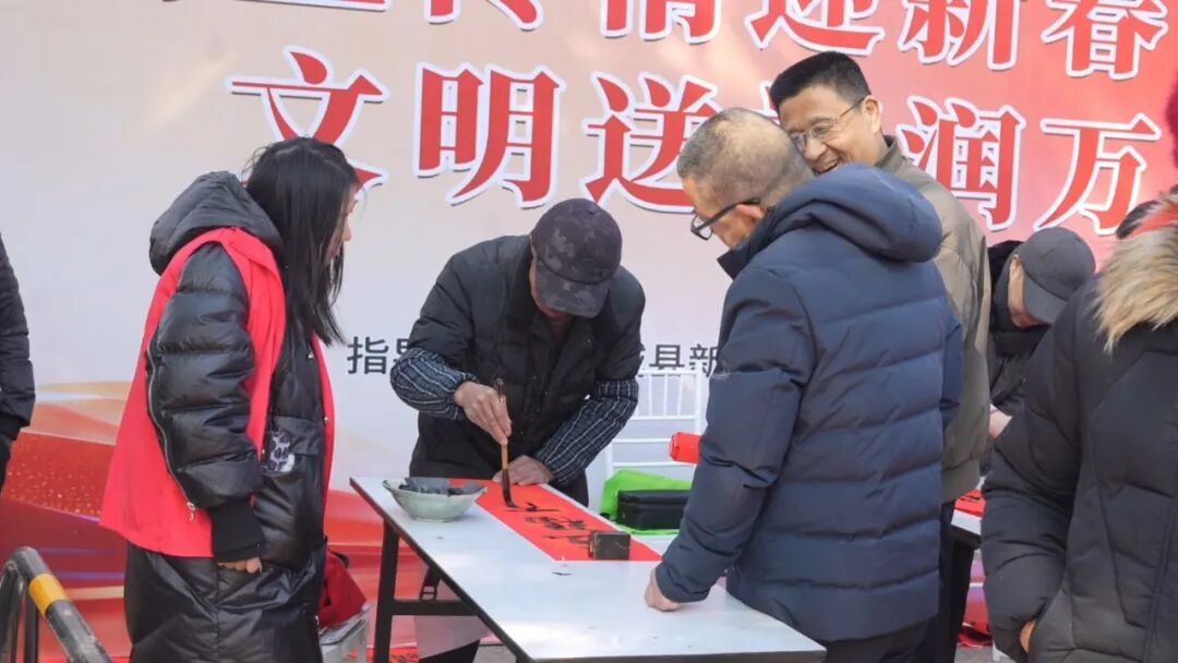 ▲表演现场 活动现场,文艺展演节目紧扣“创城”主题,兼具浦城特色与文明内涵的舞蹈、宣讲等形式多样的表演轮番上演,积极向上的氛围感染着现场每一位观众。创城知识有奖问答环节更是将气氛推向高潮,观众们踊跃举手、积极作答,创城意义、“浦风十礼”、文明燃放等知识在一问一答间入脑入心,答对的市民收获精美雨伞礼品,在欢乐中加深了对创城目标的理解。 在主题宣传区,志愿者们向过往市民发放创城宣传页,用通俗易懂的语言讲解“浦风十礼”文明行为规范与文明燃放烟花爆竹理念,引导市民树立安全意识,让“言行有礼、洁净有礼、出行有礼”等十礼要求走进群众生活。线上入户问卷有奖问答同步开启,市民参与答题后可现场领取定制纸巾。同时,县老年书画艺术研究会的书法家们挥毫泼墨,将创城心愿、文明祝福融入一撇一捺,一幅幅饱含年味与文明寓意的春联新鲜出炉,被市民们争相领取。