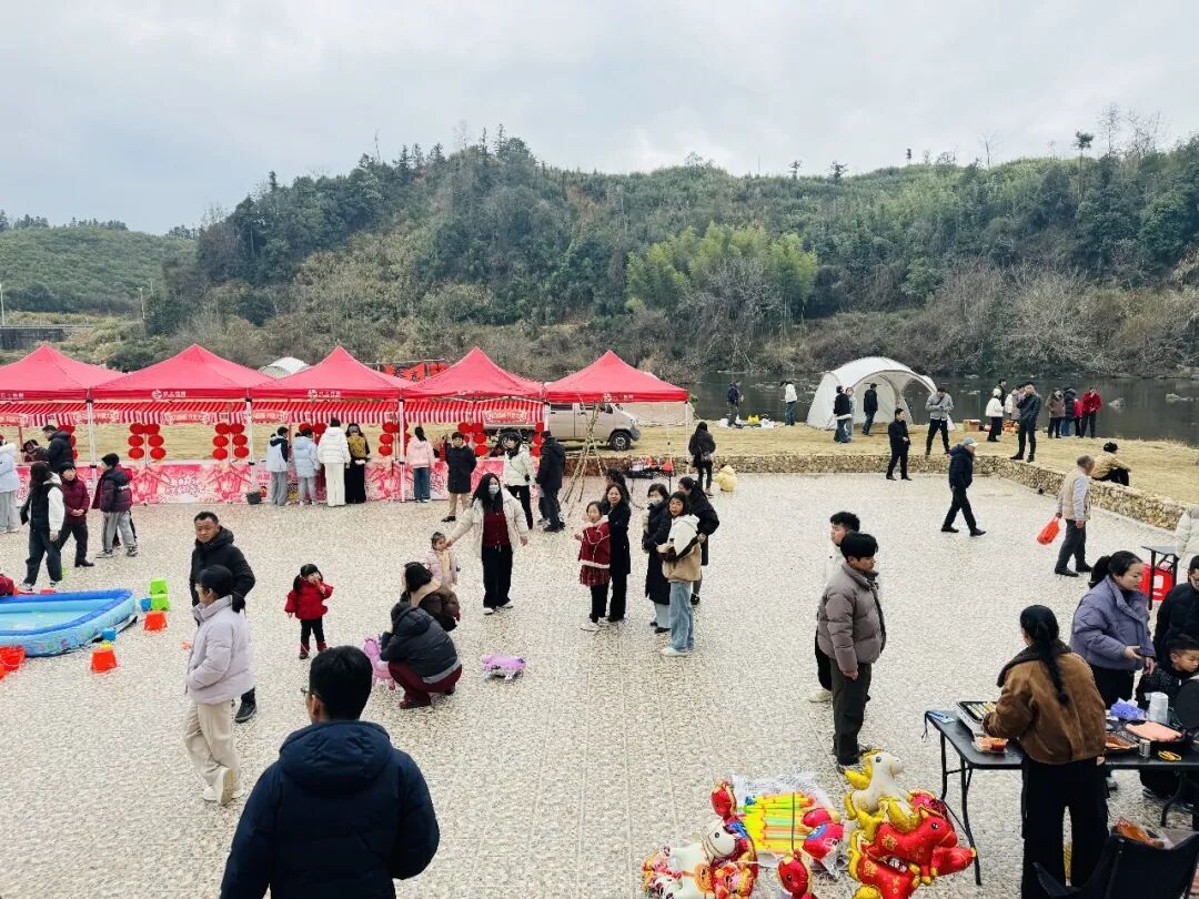 ▲富岭瑞安溪林里活动现场 正月初四的瑞安溪林里,青山为幕,草地为席,一场“声动溪林里·新春畅响”草地音乐会正在暖阳下唱响。烈鸠乐队登上简易舞台,一首接一首的歌曲在草坪上流淌。孩童们在草坪上转起圈来,笑声随音乐飘远。不远处,“套福迎春”活动的吆喝声此起彼伏。套圈在空中划过弧线,围观人群的欢呼声一浪高过一浪。刚从武汉返乡的大学生凌晨睿提着战利品开心地说:“在城里过年是抓娃娃、刷手机,回村过年是真刀真枪套活鸭,这年味够味!” 这场音乐会,只是富岭镇春节“日日有戏”的一个缩影。据了解,从“腊八村唱赛”,到腊月十九的“来富岭过大年”村球赛、腊月廿一的“福聚溪林里·风吟山与歌”2026年富岭镇村晚,再到腊月廿四的“匡湖云漫·村舞迎春”2026年富岭镇小年广场舞交流赛,富岭镇的春节,是一张排得满满当当的“乡土节目单”。村晚舞台上,当地政府工作人员自编自演的小品用方言讲着反诈知识,快板宣讲传递党的二十届四中全会精神。富岭镇党委宣传委员吴曼琳穿梭在各个活动现场,手机响个不停:“从腊八到现在,我们办了近十场活动,场场爆满。乡亲们说了,这才叫‘日日有戏,村村热闹’!截至目前,春节期间瑞安溪林里打卡约3.3万人次。”