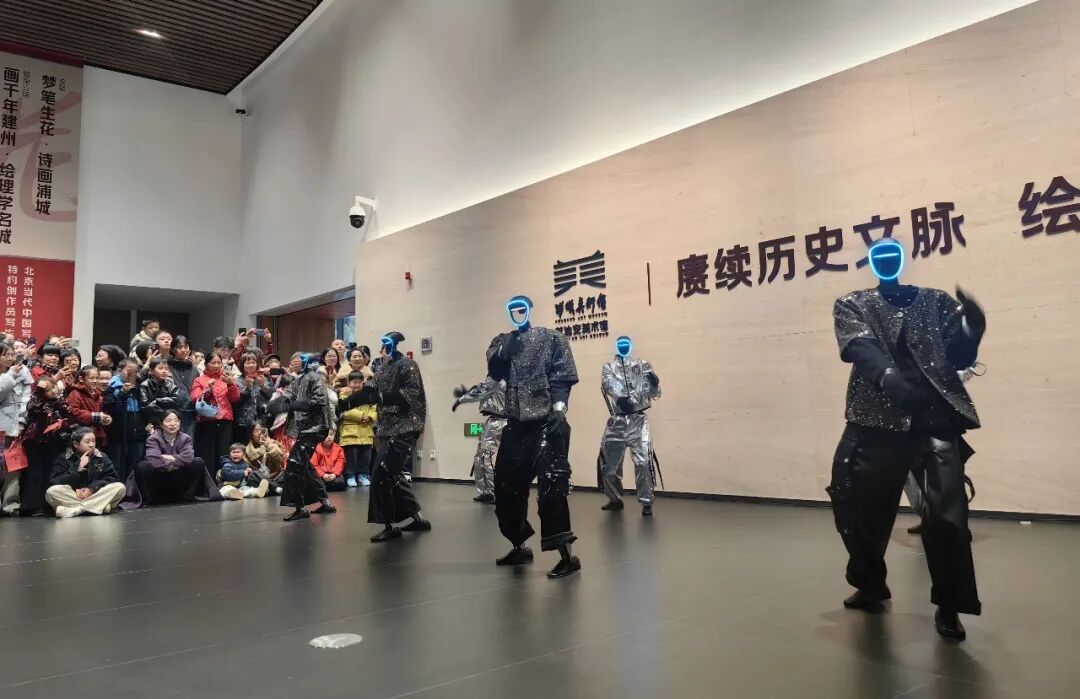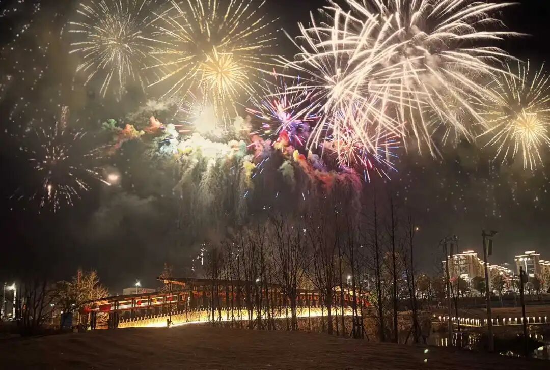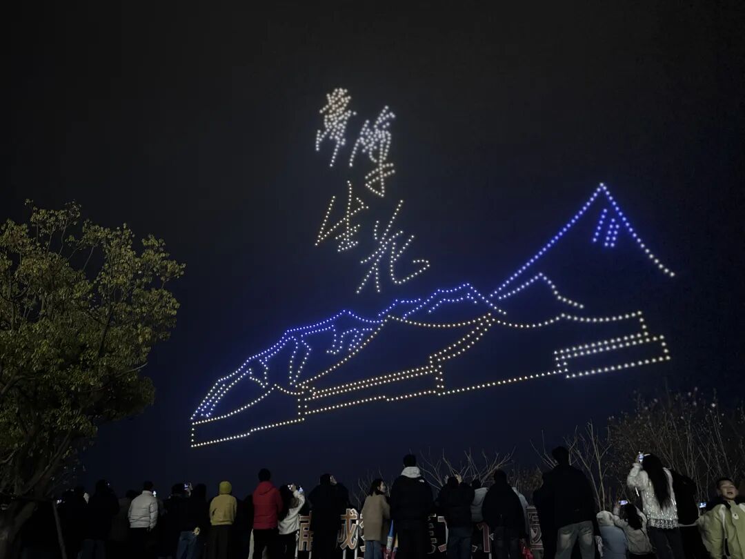 ▲机器人表演 浦城美术馆/范迪安美术馆里,央视同款机器人表演天团的《海边有风浪》舞台秀被围得水泄不通。八台银灰色机器人在光影交错中整齐列队,机械臂同时扬起如麦浪翻涌,从江西上饶驱车两小时赶来的年轻情侣王子龙、郑苑伊举着云台全程直播,女孩兴奋地对着镜头喊:“太震撼了,在小县城看到这种级别的科技秀,真的被硬核浪漫击中了!” 夜幕降临,梦笔文化园上演的“骏马踏梦·笔舞光澜”焰火与无人机秀结束了一天的精彩。焰火炸裂,金菊银柳倾泻如瀑,将南浦溪水面染成流动的琥珀色,1000架无人机随后自草坪腾空而起,倏忽间散作漫天星斗。市民徐谦站在人群中仰头拍了10多分钟:“朋友圈九宫格根本装不下,得发视频。今年春节浦城活动不断、年味十足,我深深感受到,家乡在用最好的东西迎接我们回家。”
