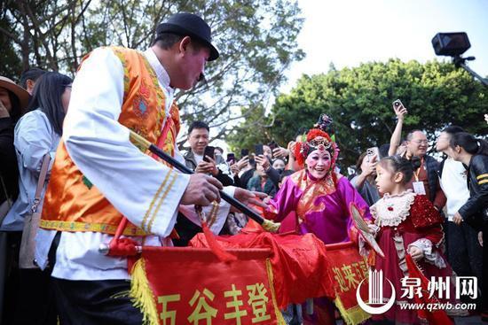 游客春节体验泉州非遗项目。王柏峰 摄 “闽式福年”的成功,首先在于破解了地域文化传播的同质化困局。福建紧扣“福文化”的双重属性,既是中华民族共通的精神祈愿,又在八闽大地沉淀出独特的地域表达。福建将“福”字拆解为可感知的生活场景。三坊七巷的古厝灯火、土楼里的团圆宴席、金牌旅游村的山海风味,让“福”不再是抽象的概念,而是游客可触摸、可参与、可共情的日常体验。过夜游客花费的稳步增长,恰恰证明这种文化浸润的深度,游客的停留早已超越观光本身,转向对地域生活方式的沉浸式认同。 更深层的价值,在于福建实现了传统文化与现代消费的双向赋能。数字文旅与非遗的碰撞,最能体现这种赋能的智慧。福清石竹山的智能机器狗与汉服巡演同台,并非科技与传统的生硬拼接,而是用年轻化的互动形式,降低了非遗的体验门槛;漳州古城的《再回闽南》楼体演艺,不是对历史的刻板复刻,而是用沉浸式叙事,让闽南文脉在当代语境下重生。这种创新的核心,是让传统适配现代审美,让科技服务文化传播。