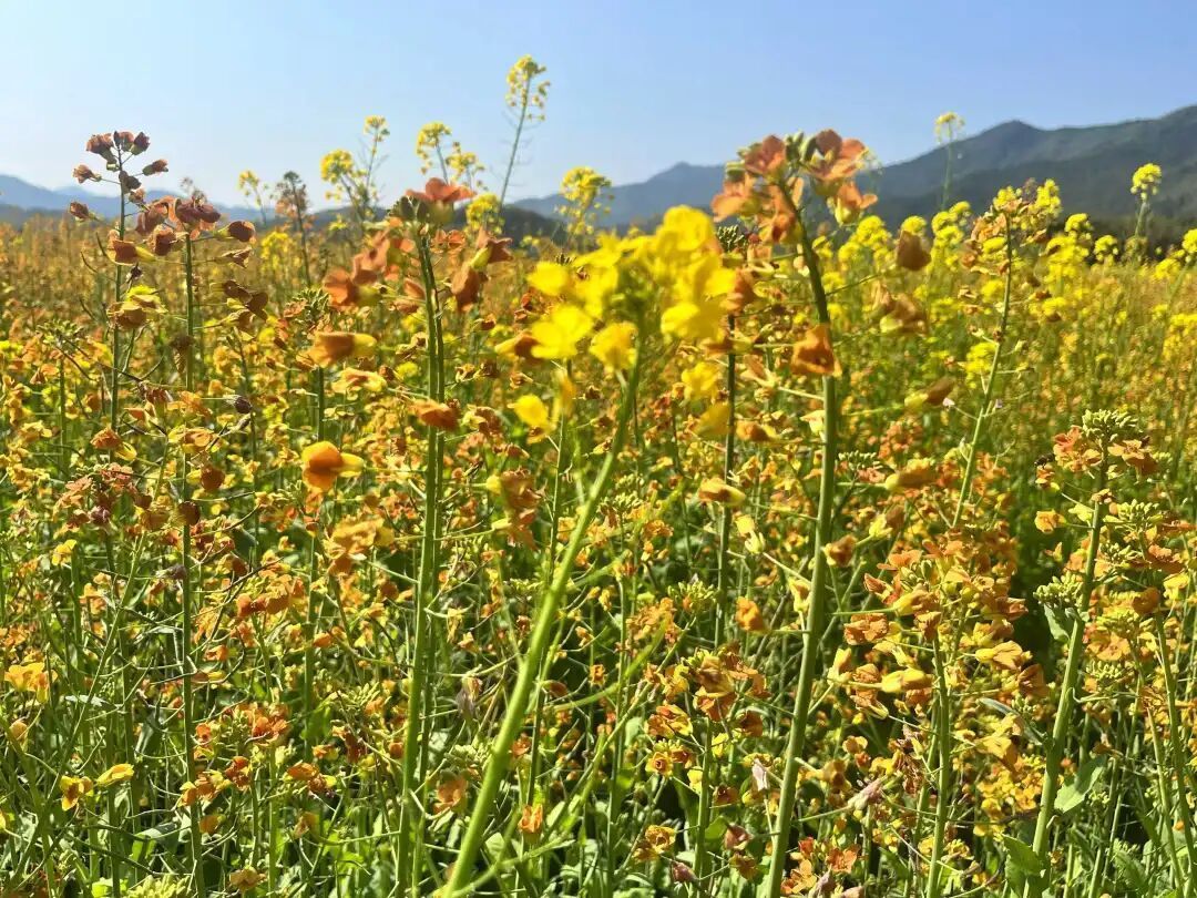 闽北暖煦的风掠过申明村千亩花田,粉的娇嫩、白的纯净、紫的雅致,与连片的明黄交织成锦,在青山环抱间铺展成一幅流动的春日长卷。古朴的村落炊烟袅袅,科技小院的身影点缀其间,“稻再油”轮作的田垄里,藏着农人的智慧与增收的期盼。