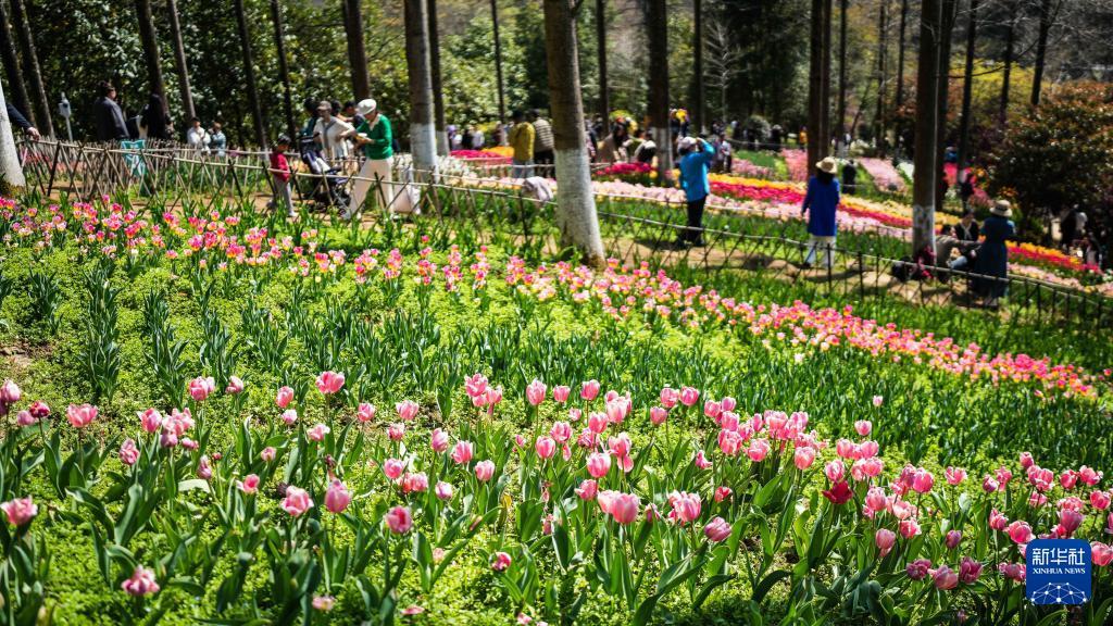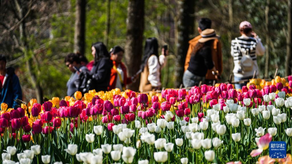 游客在龙里县龙架山国家森林公园内赏花游玩(3月12日摄)。 近日,贵州省黔南布依族苗族自治州龙里县龙架山国家森林公园内的数万株郁金香竞相绽放,吸引各地游客前来游玩赏景。 近年来,龙里县依托良好的生态环境和区位优势,大力发展“美丽经济”,通过种植四季花海,完善旅游基础设施,推动单一观光向综合消费升级,为“赏花”经济注入强劲活力。 新华社记者 陶亮 摄