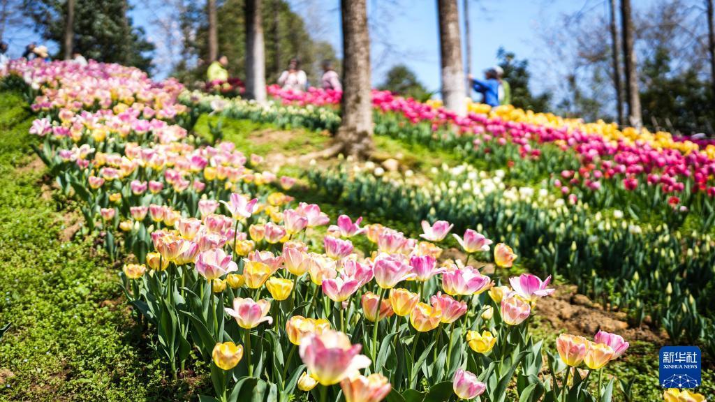 龙里县龙架山国家森林公园内郁金香花海一隅(3月12日摄)。 近日,贵州省黔南布依族苗族自治州龙里县龙架山国家森林公园内的数万株郁金香竞相绽放,吸引各地游客前来游玩赏景。 近年来,龙里县依托良好的生态环境和区位优势,大力发展“美丽经济”,通过种植四季花海,完善旅游基础设施,推动单一观光向综合消费升级,为“赏花”经济注入强劲活力。 新华社记者 陶亮 摄