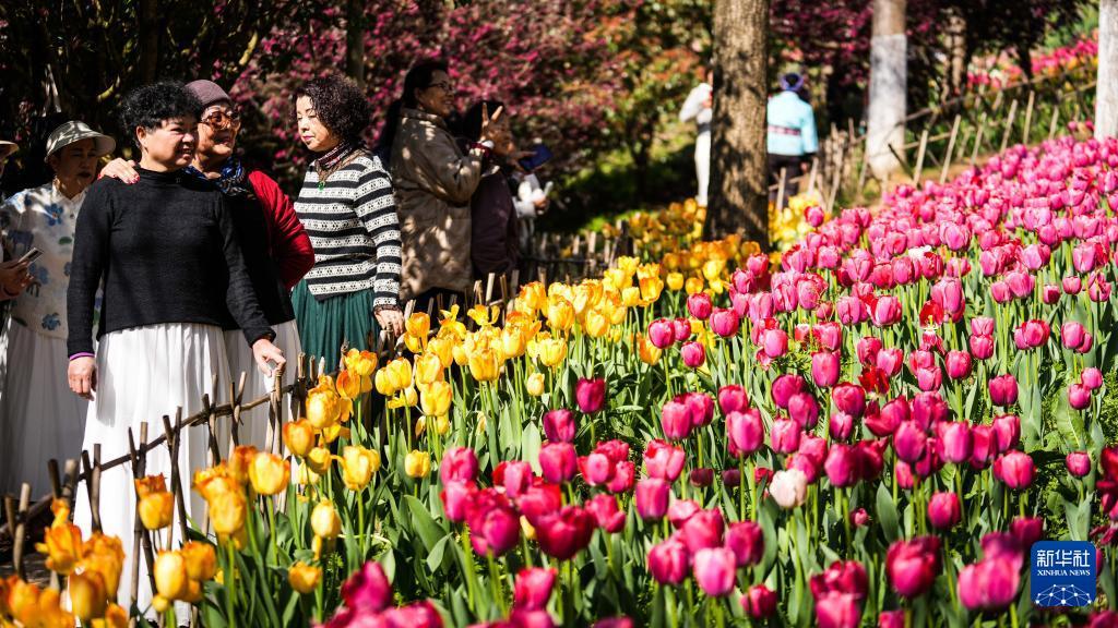 游客在龙里县龙架山国家森林公园内拍照留念(3月12日摄)。 近日,贵州省黔南布依族苗族自治州龙里县龙架山国家森林公园内的数万株郁金香竞相绽放,吸引各地游客前来游玩赏景。 近年来,龙里县依托良好的生态环境和区位优势,大力发展“美丽经济”,通过种植四季花海,完善旅游基础设施,推动单一观光向综合消费升级,为“赏花”经济注入强劲活力。 新华社记者 陶亮 摄