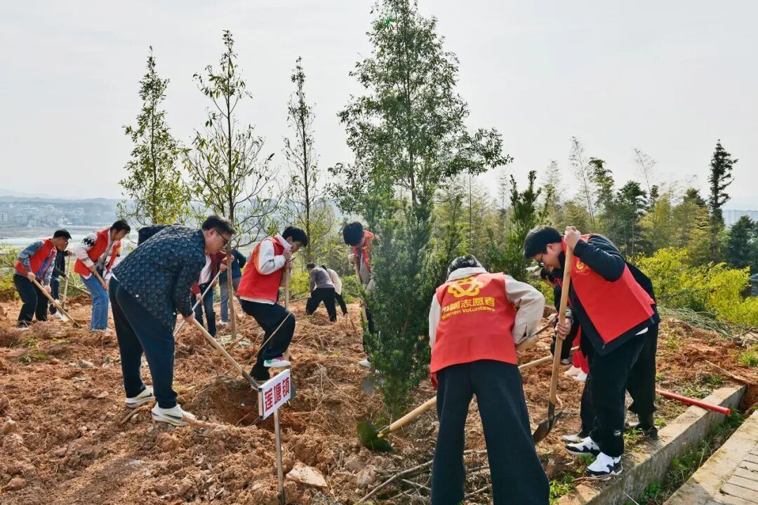 ▲植树现场 上午9时,植树现场一派热火朝天的景象,来自县林业局、城市管理局、农业农村局、退役军人事务局、武装部、公安局、检察院、法院、莲塘镇、团县委、妇联、供电公司等12家单位的干部职工及青年志愿者约125人,齐聚章氏功德院周边区域。大家分工协作,挥锹铲土、扶苗培土、提水浇灌。经过一番辛勤劳动,400株新栽的树苗迎风挺立,为古朴庄重的功德院周边增添了勃勃生机。 章氏功德院作为县级文物保护单位,承载着深厚的历史文化底蕴,是十里莲塘3A级景区的重要人文景观。将义务植树点定于此,是推动绿色发展与历史文化保护有机结合的创新举措。 活动精心选用了楠木、鄂西红豆杉、罗汉松等珍贵树种进行栽植。这些树木不仅具有较高的生态价值和景观效果,其“珍贵”“长寿”“高雅”的文化意象,更与功德院所代表的传统文化精神相契合,寓意着优秀传统文化在新时代的沃土中生根发芽、枝繁叶茂,历久弥新。