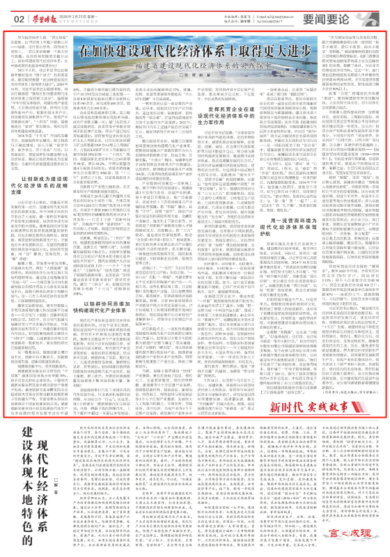 福建日报、学习时报联合推出|在加快建设现代化经济体系上取得更大进步
